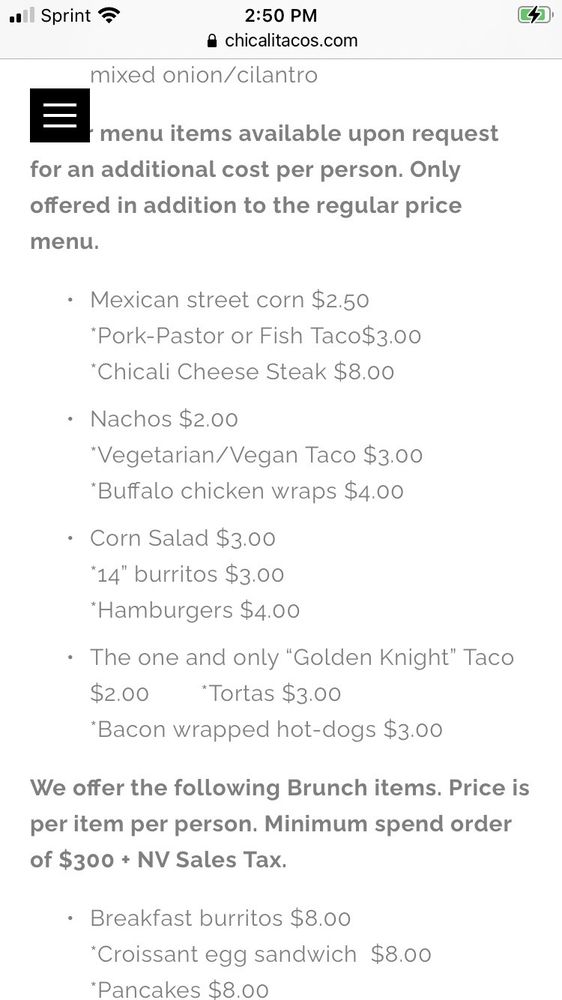 Introducing the menu at Chicali Tacos is a flavorful journey that promises to delight taco lovers in Henderson, NV. Nestled at 8722 Heatherstone St, this taco haven offers an array of well-seasoned, freshly prepared tacos, including favorites like chicken and carne asada, all served hot and with a side of delightful ambiance. Customers rave about the excellent taste and value, highlighting memorable experiences from intimate gatherings to larger celebrations. With accolades like "best deluxe crunchy tacos," it's clear that Taco Master Juan and his team are dedicated to quality and professionalism. The warm, welcoming service has made Chicali Tacos a preferred choice for everything from graduation parties to corporate events. Their attention to detail and unmatched communication ensures that every dining experience is not just a meal but a cherished memory. For those seeking authentic, mouth-watering tacos, Chicali Tacos is a must-visit restaurant.